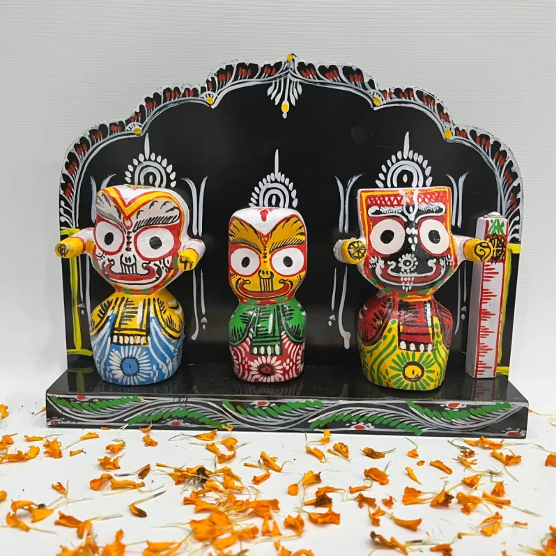 Handcrafted Neem Wood Idols of Lord Jagannatha Balabhadra and Subhadra.