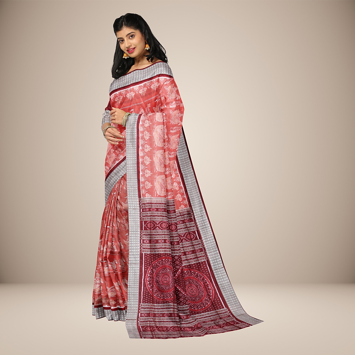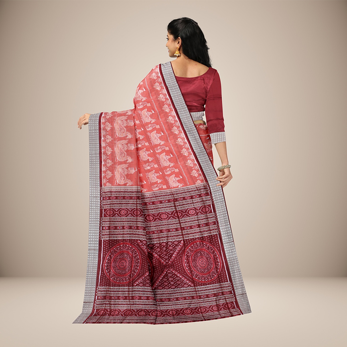Swan Boita motifs on Peachy Pastel Sambalpuri Silk Saree
