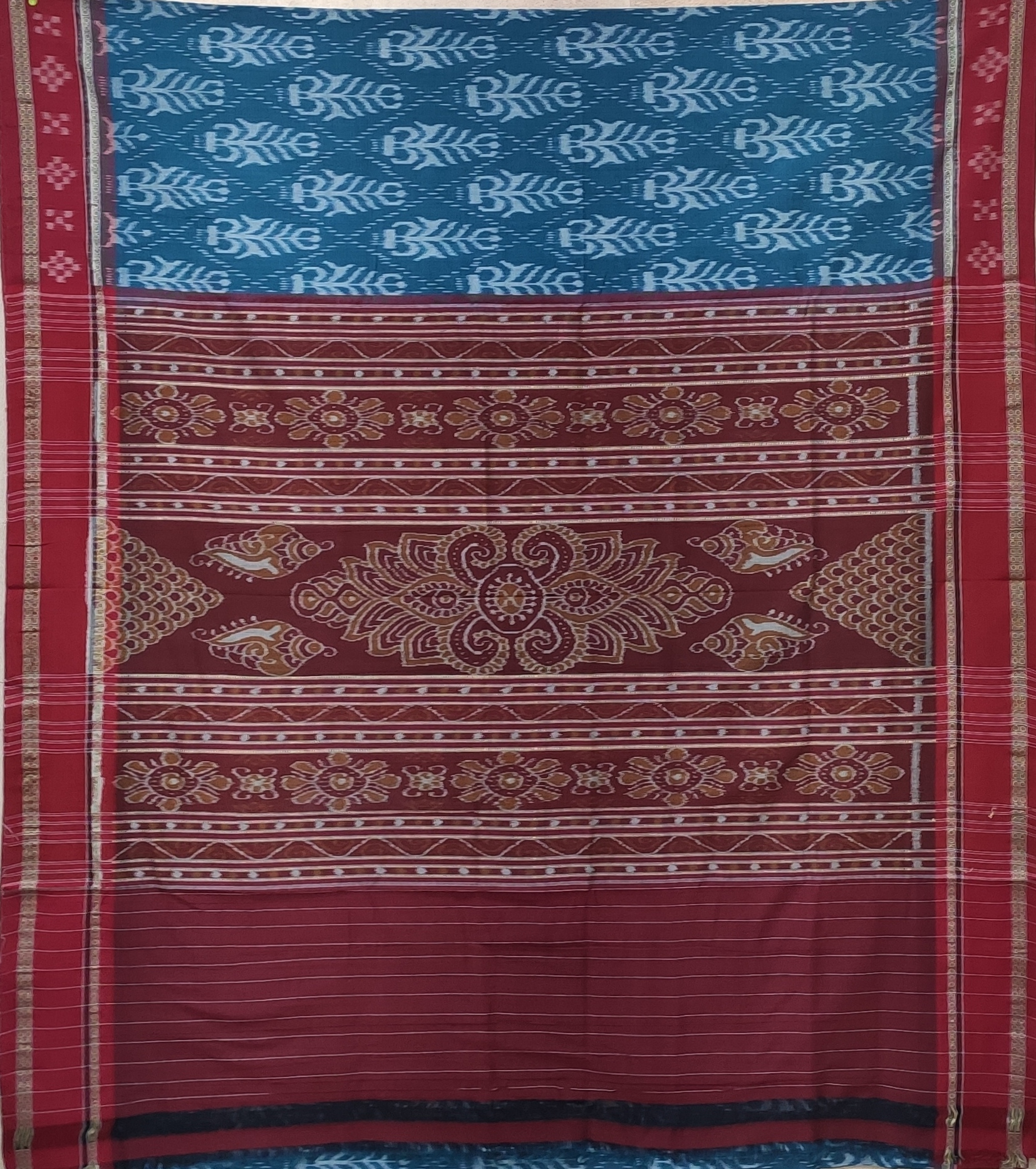 Nuapatna is a traditional Cotton saree produced from Odisha. This Saree Blue in Body Colour With Red Border & Pallu.