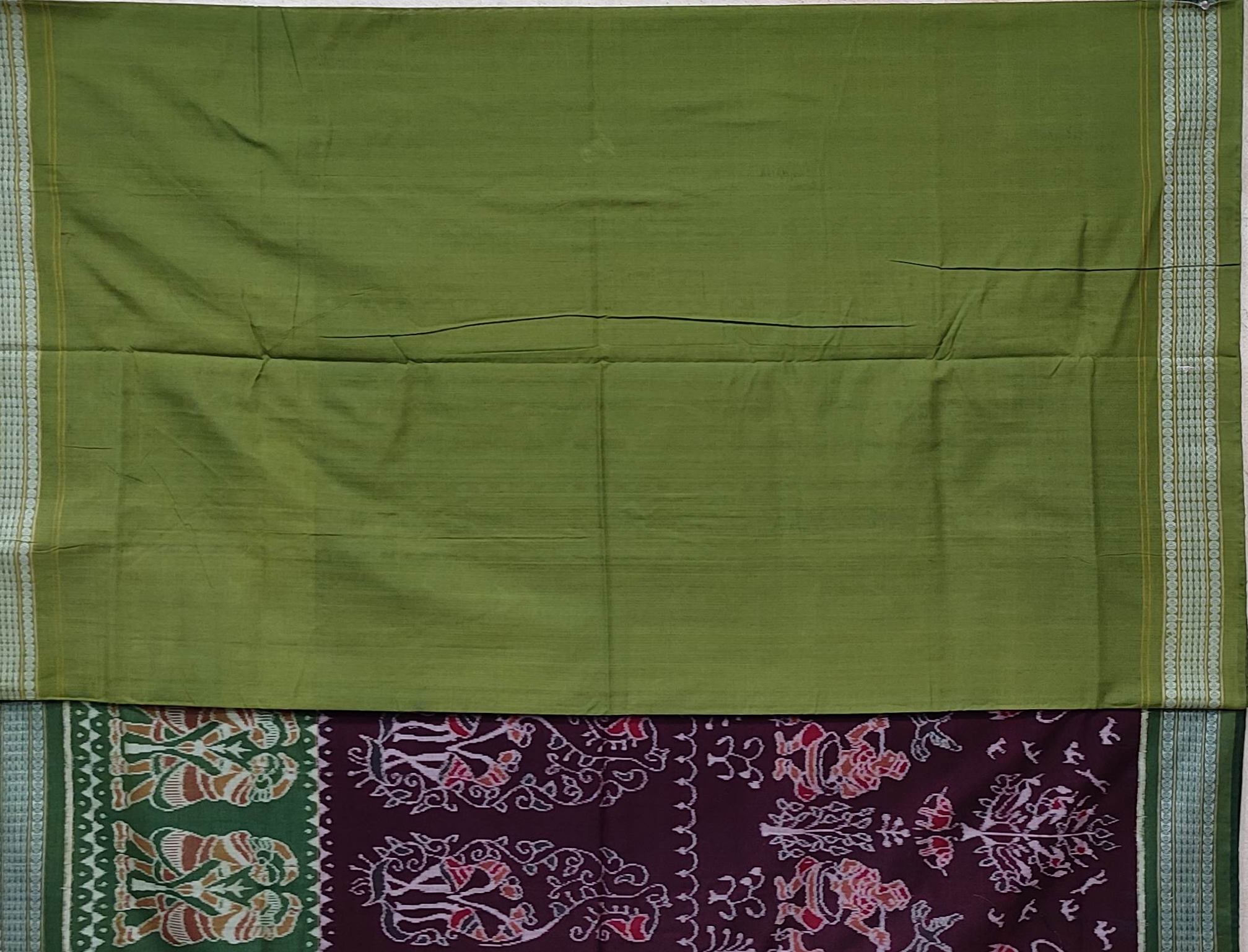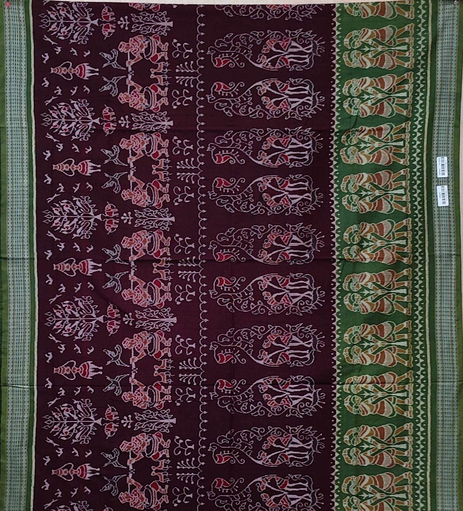 Sambalpuri sari is a traditional handwoven ikat or sari wherein the warp and the weft are tie-dyed before weaving. This Saree Coffee in Body Colour With Mehendi Rudrakhya design Border & Pallu With Blouse Piece.