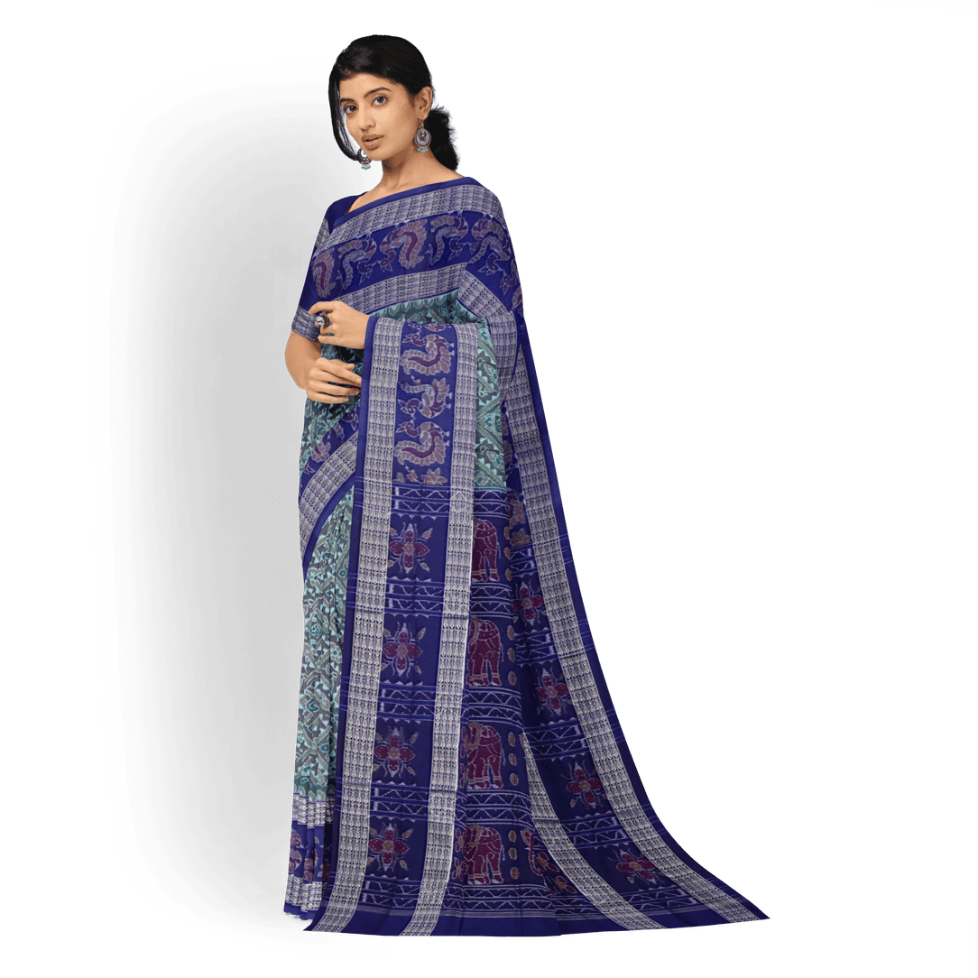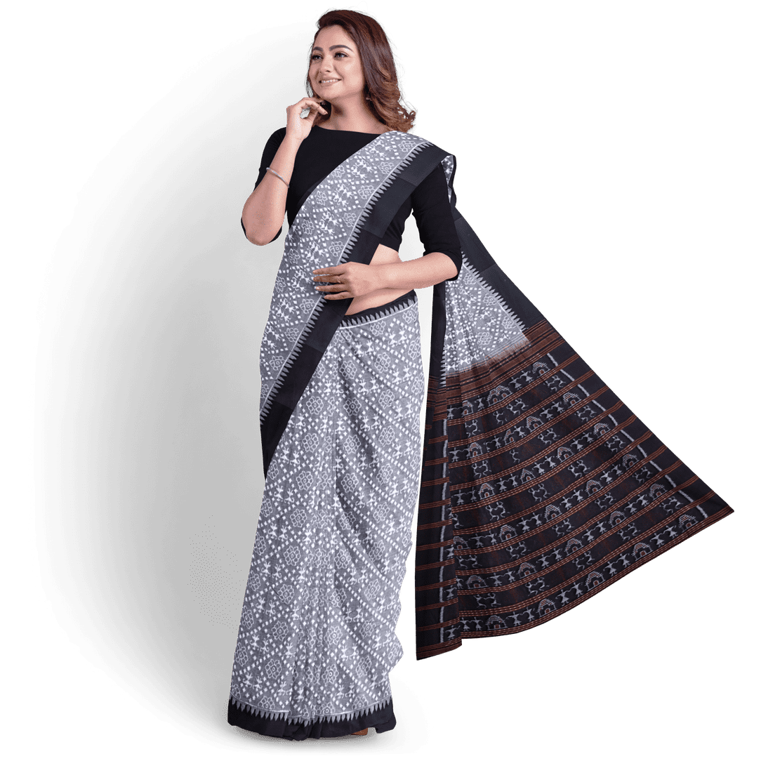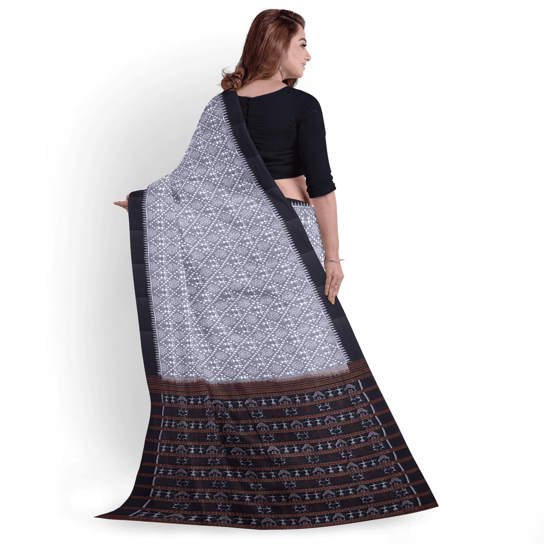 Tribal Design Temple Border Sambalpuri Cotton Saree