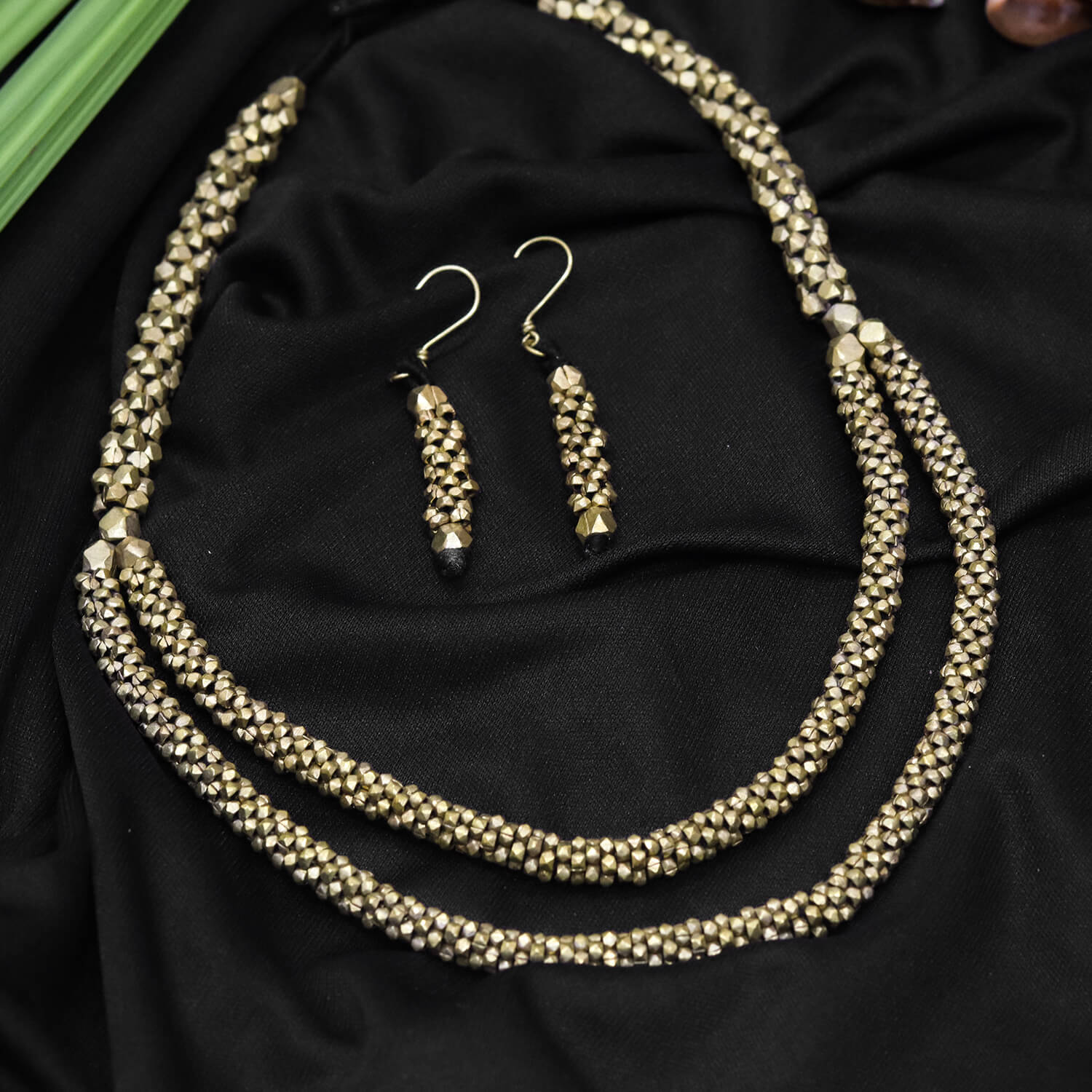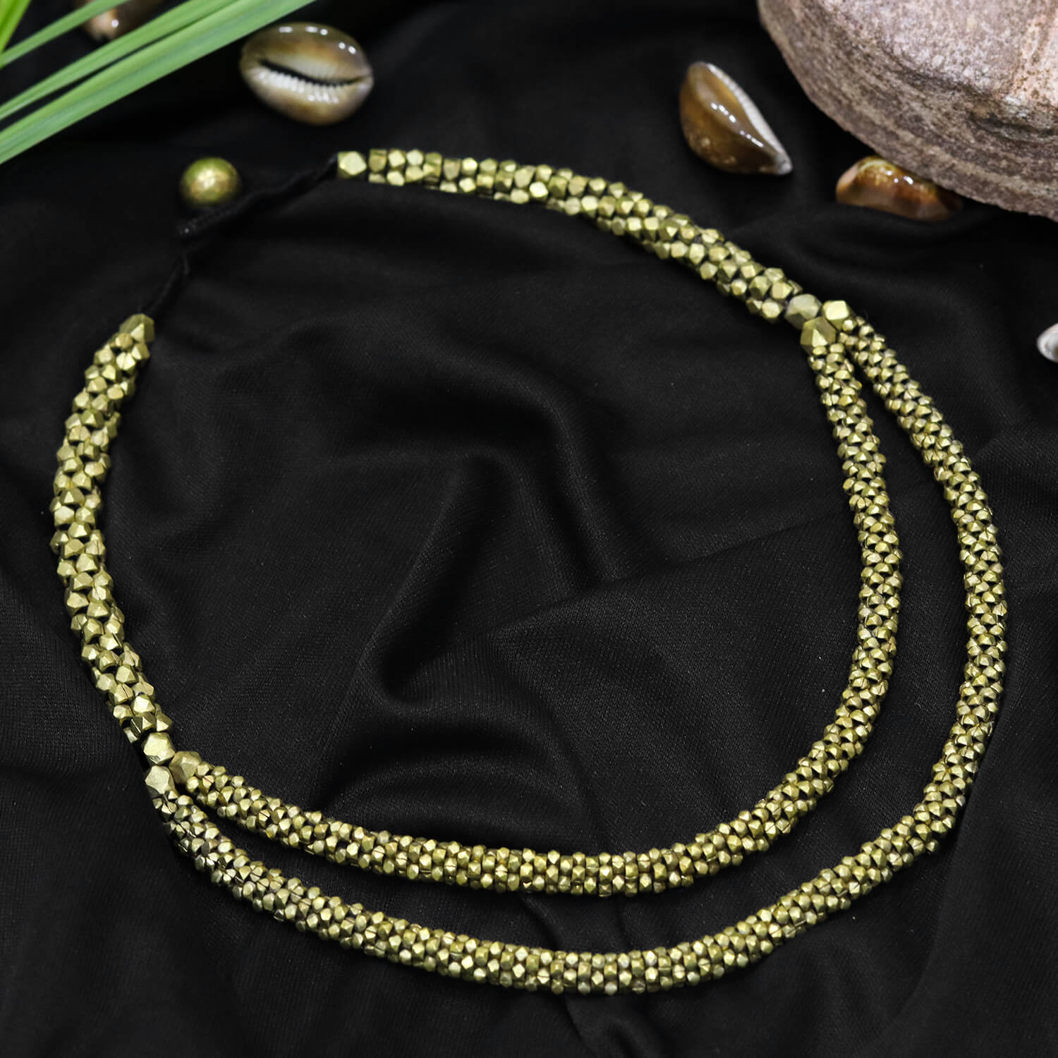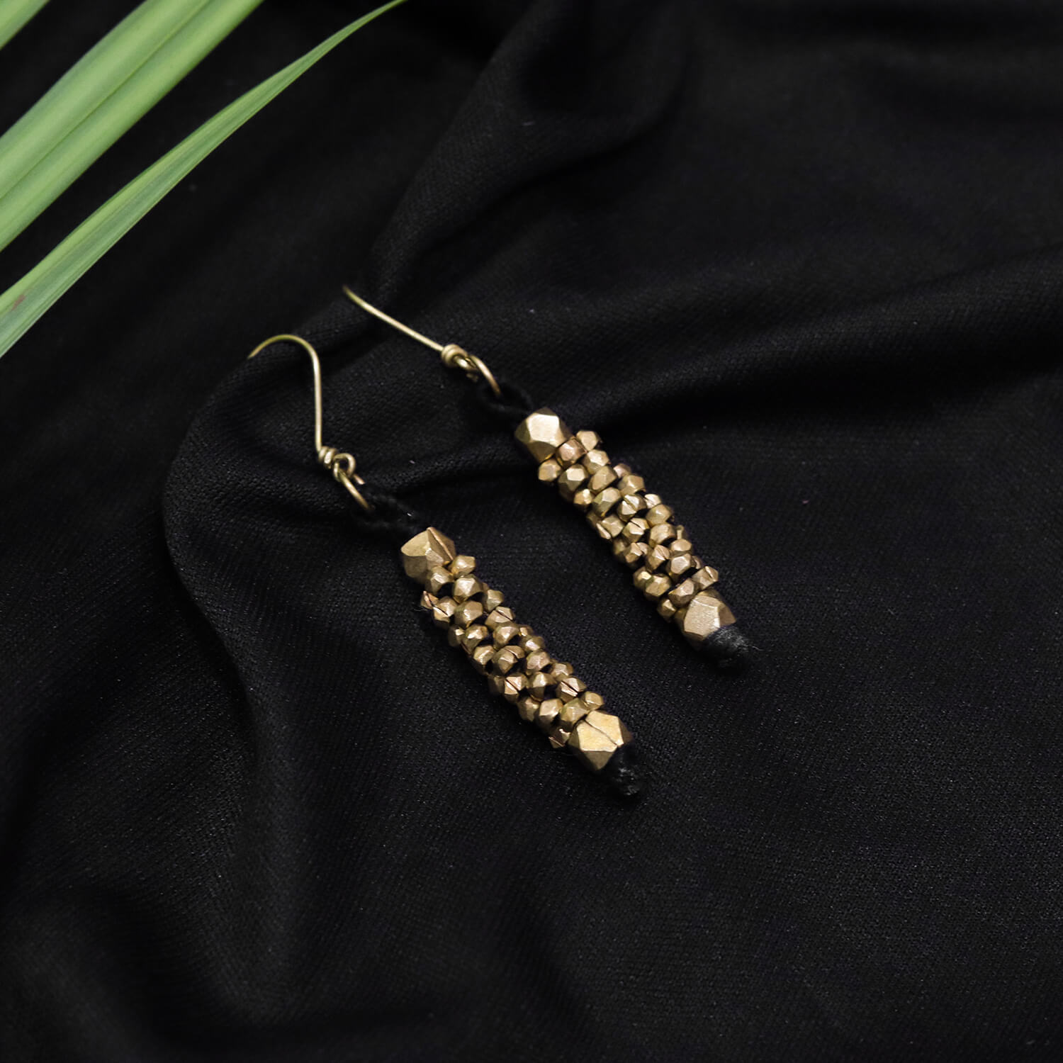 Handcrafted brass metal alloy Dhokra beads & threadwork. The Dhokra system of metal casting is said to be the oldest form of metal casting and is technically known as the ‘cire perdue’ or lost wax process. The casting technique revolves around replacing wax with molten metal by the traditional hollow casting method. Dhokra casting is currently practiced in tribal areas of India, primarily in Chhattisgarh and Odisha.