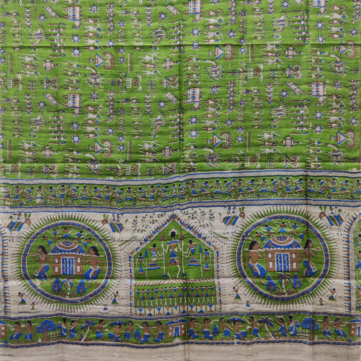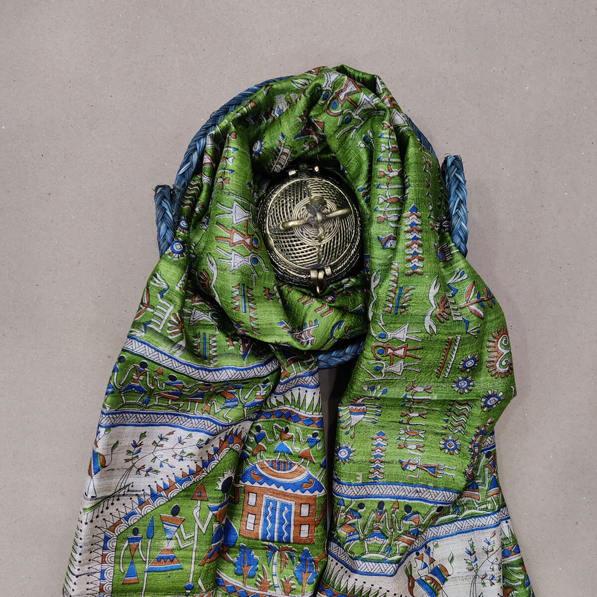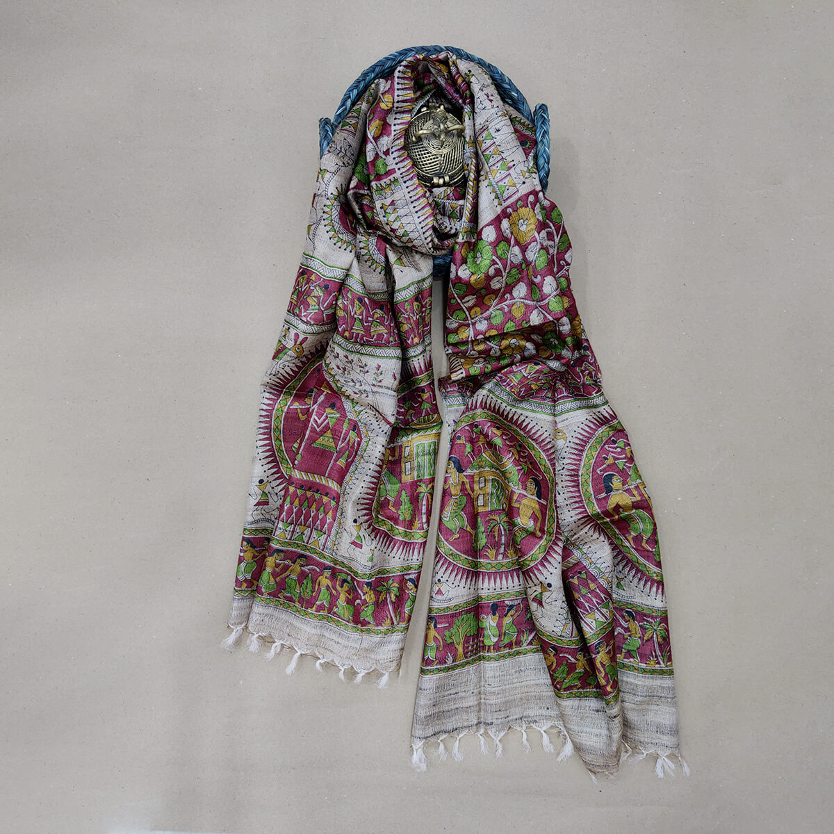 These lovely Dupattas are made from excellent Tussar silk, also known as Kosa silk and comes from a wide-winged moth. Its dull gold texture serves as an ideal foundation for embroideries and print motifs that draw inspiration from nature.