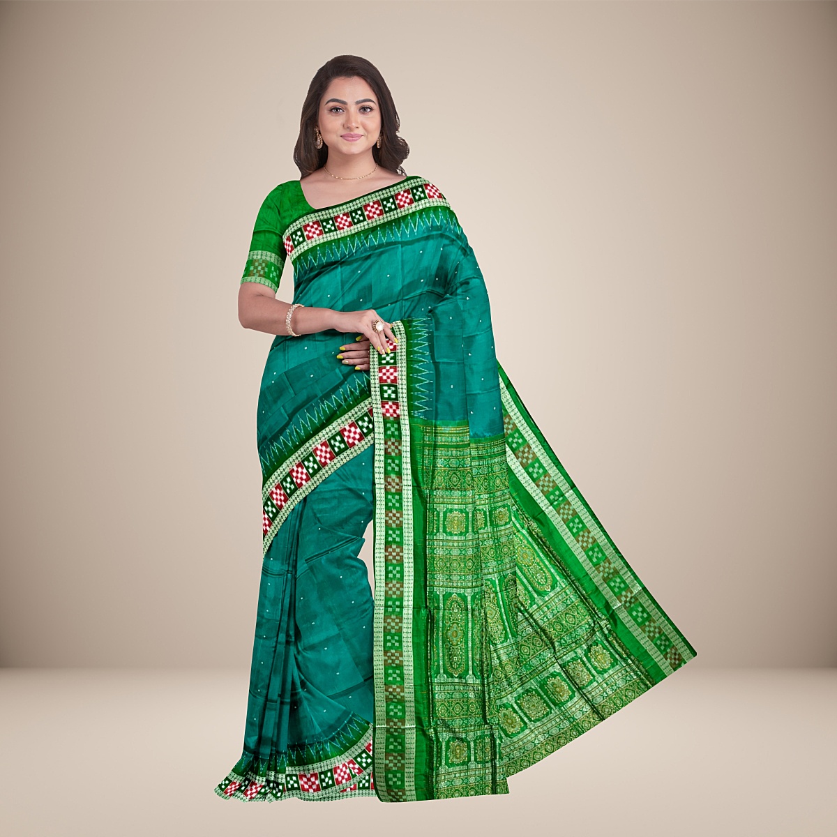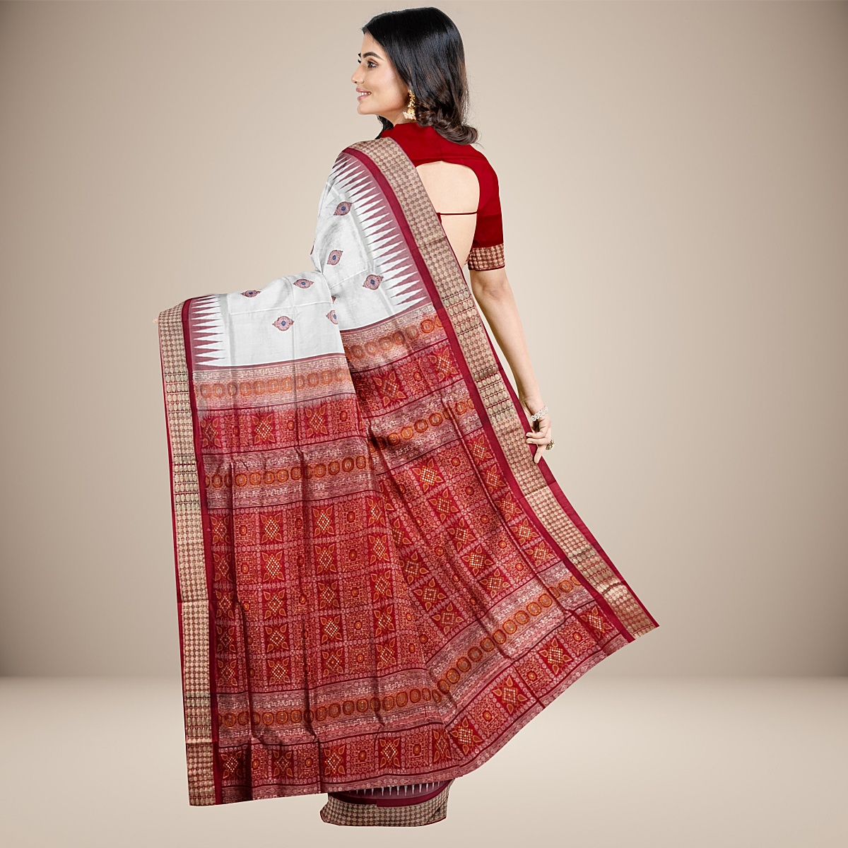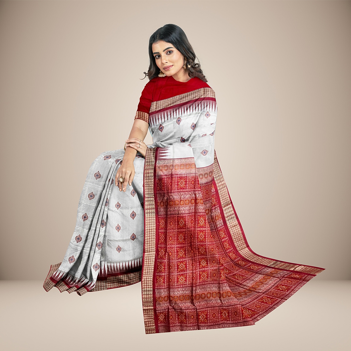 Bomkai saree is named after a small picturesque village in the Ganjam district called Bomkai. It is also known as the Sonepuri saree and is highly regarded for its exquisite woven fabric and artwork. Another feature that distinguishes Bomkai Sarees is the incorporation of mythological scenes and historical stories. It is also worth noting that Bomaki sarees feature the use of contrasting colours and nature-inspired motifs. The well-known Bomkai or Sonepuri is regarded as one of the most treasured pieces of clothing and is a must-have in every woman’s wardrobe.